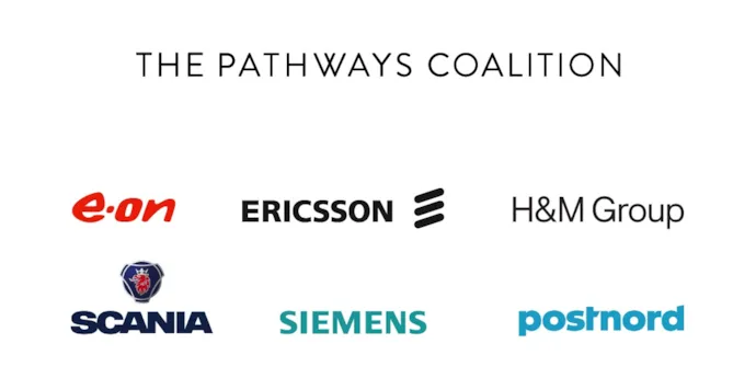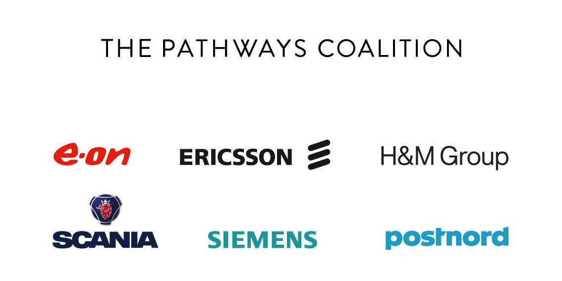 The Pathways Coalition is a partnership of several industry leading companies in the transport value chain committed to accelerating the work to decarbonize heavy transport. Its founding members were E.ON, H&M Group, Scania and Siemens, and the group was subsequently expanded through the addition of Ericsson and now PostNord, the first logistics operator. The coalition members meet regularly to assess the working relationship and to chart the direction going forward. The member companies have committed to the vision of the coalition of becoming completely fossil-free by no later than 2050, to making an active contribution to the partnership, and to contributing funds in accordance with joint decisions.