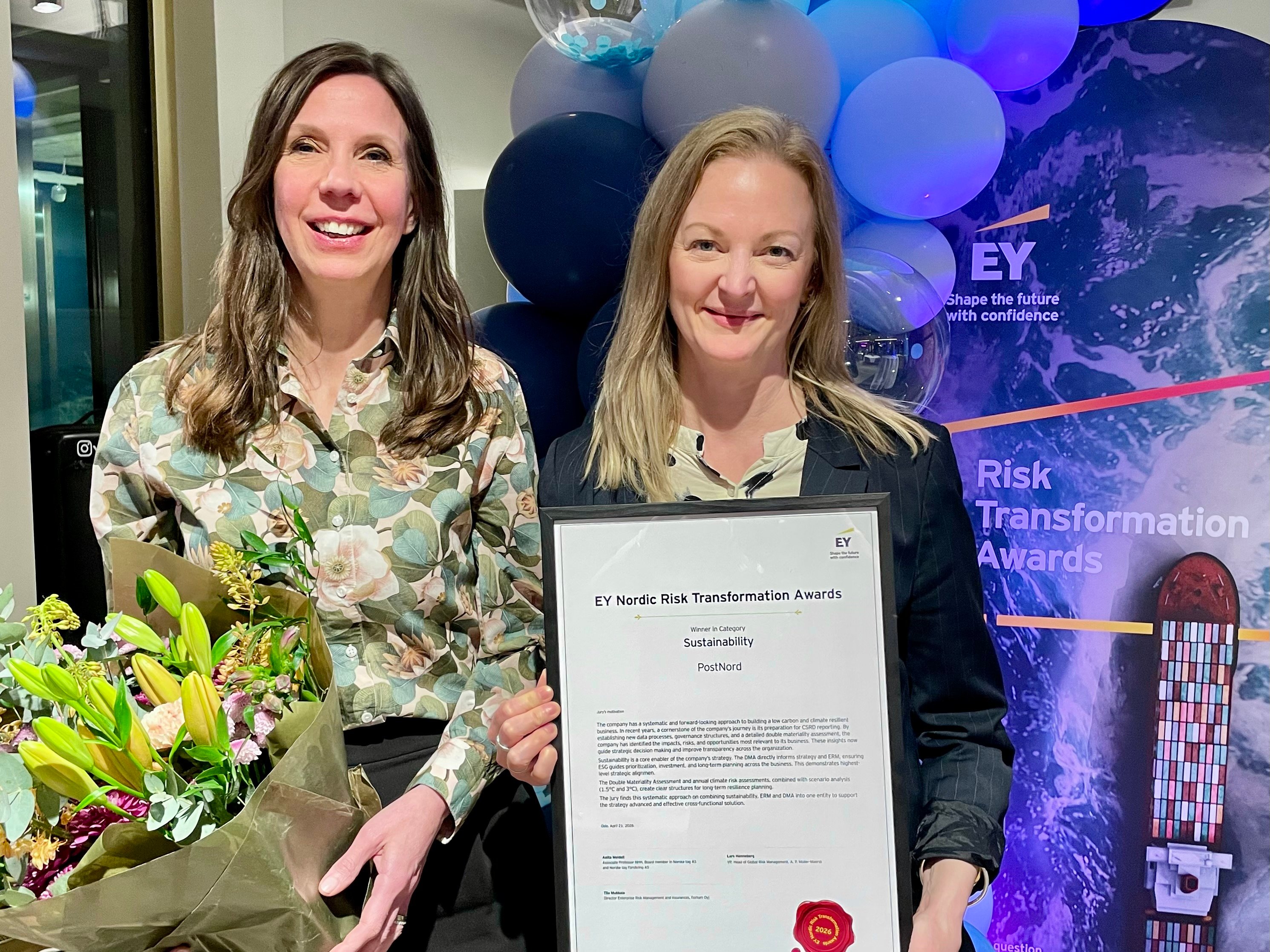 PostNord has been named the winner in the Sustainability category at the EY Nordic Risk Transformation Awards.