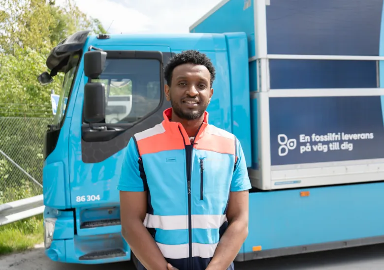 Driver Yonathan Tecile from PostNord’s terminal in Veddesta, Sweden is already behind the wheel of an electric heavy truck.
